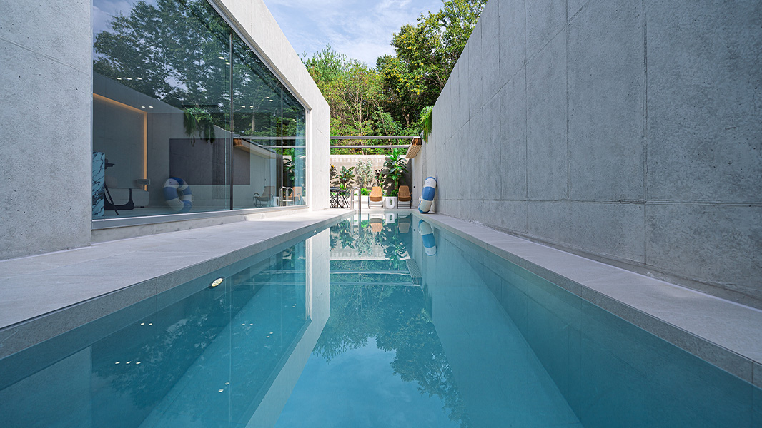 품격 있는 건축미와 여유로운 야외 수영장이 어우러져