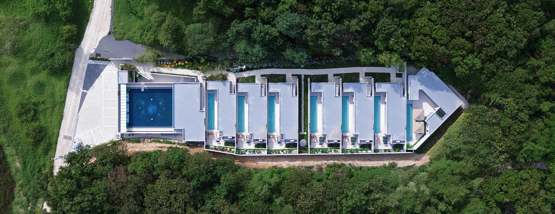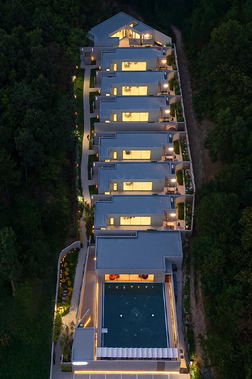 도심에서 벗어난 자연 속에서 숲의 고요함을 느낄 수 있는 프라이빗 풀 리조트입니다.