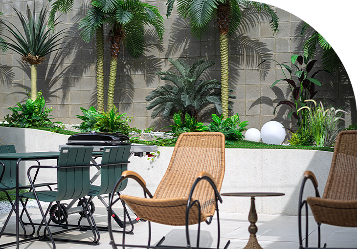 수영하며 즐길 수 있는 바비큐장엔 대형 웨이브 어닝을 설치해 햇볕과 비를 피할 수 있습니다.