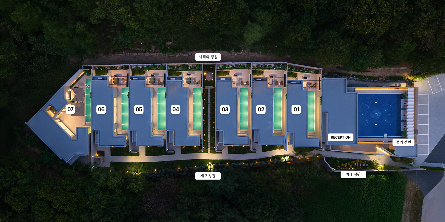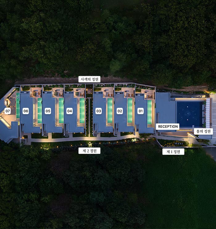 1 2 3 4 5 6 7 사색의정원 제 1 정원 제 2 정원 리셉션 물의정원